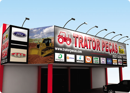 Placas: Acabamento – Alumínio, Cavalete, Wind banner, Fachadas Comerciais em ACM, Backlight, Placas em ACM, Frontlight, Placas em Acrílico, Letras Caixa, Placas com Iluminação em LED, Toldo em Lona ou Policarbonato e Projetos especiais
